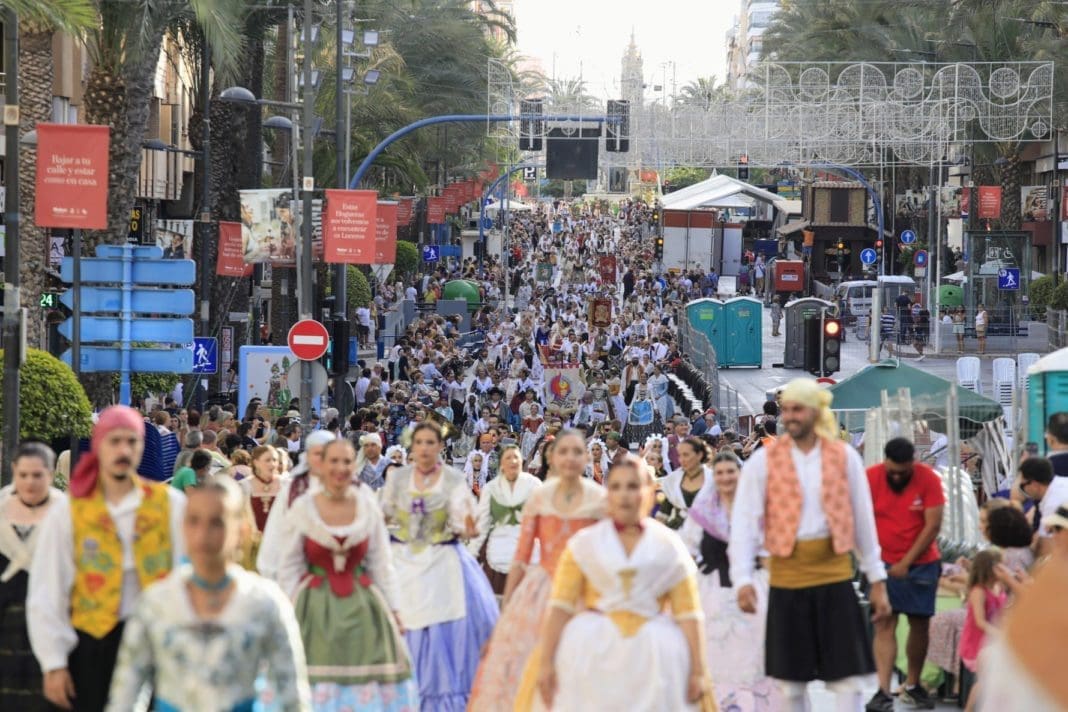 Además, junto a los millares de desfilantes de las hogueras y barracas, participan agrupaciones de Alicante ciudad y otras tantas de 15 municipios de la provincia: Petrer, Agost, Elda, Busot, Rojales, Hondón de los Frailes, San Bartolomé, Novelda, Almoradí, Sant Joan d’Alacant, Aspe, Mutxamel, Albatera, Crevillent, Villena. También se han desplazado a la capital alicantina tres agrupaciones de Caudete en Albacete, Abanilla en Murcia y de Bolbaite en Valencia.