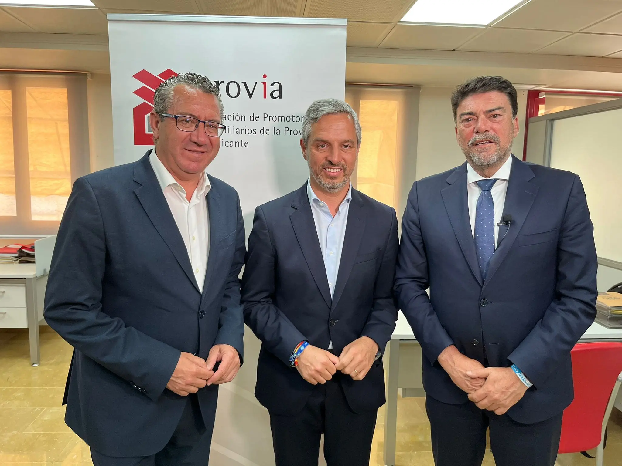 Así se ha pronunciado Barcala durante un encuentro con empresarios de obra pública de Alicante en la sede de la Asociación de Promotores Inmobiliarios de la Provincia (Provia), a la que también han asistido el vicesecretario nacional de Economía del PP, Juan Bravo, y el presidente del partido en la provincia y alcalde de Benidorm, Toni Pérez, para abordar el problema de la falta de vivienda y la necesidad de construir vivienda pública y fomentar el mercado inmobiliario, “que es clave para nuestra economía”.