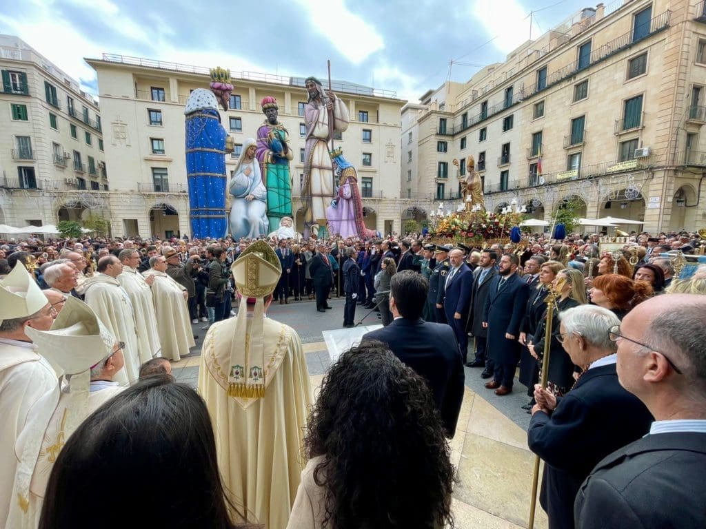La comitiva ha partido desde la Concatedral de San Nicolás a la conclusión de la ceremonia religiosa presidida por el obispo de Orihuela-Alicante, José Ignacio Munilla. Ha continuado por Labradores, San Isidro, Rambla, Altamira, Plaza del Ayuntamiento -donde Barcala ha pronunciado el Voto a la Ciudad-, Segundo Arco Consistorial, Plaza de la Santísima Faz, Mayor, Muñoz, Plaza del Abad Penalva y Concatedral, donde ha finalizado. Cincuenta han sido los costaleros que han portado la imagen del Patrón. Niños de las distintas fiestas de Alicante y de familias de feligreses, haciendo sonar xiulets y campanillas, se han sumado al cortejo. L´Harmonia Sociedad Musical ha figurado, al mismo tiempo, en el cortejo interpretando marchas procesionales como ‘Jerusalén’ (José Vélez).