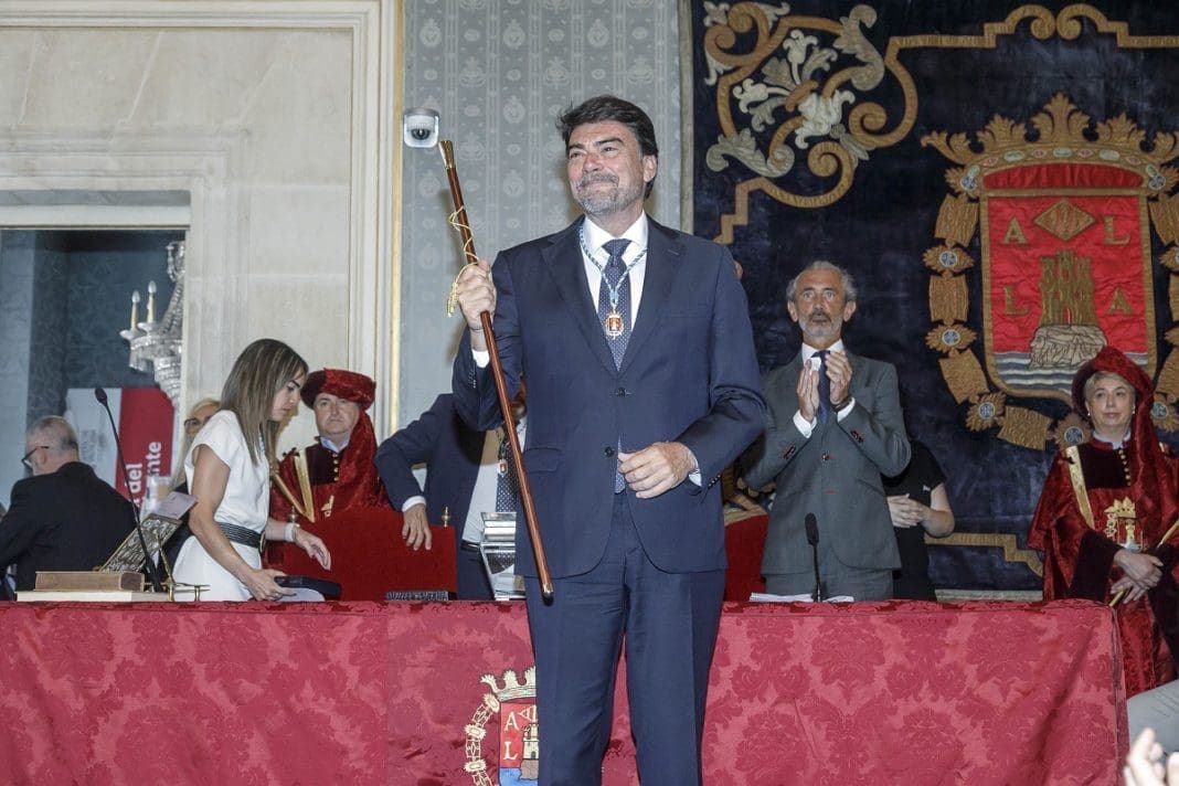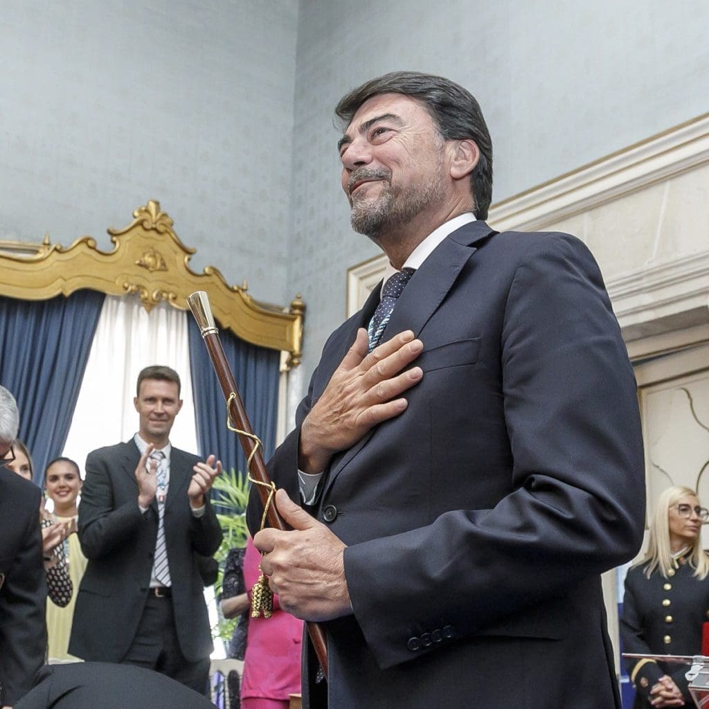 Diez minutos antes de las 12 del mediodía de este sábado 17 de junio, Luis Barcala ha sido investido alcalde de la ciudad de Alicante, en lo que será su tercer mandato. Se ha alzado con el bastón de mando gracias a los votos del Partido Popular, 14 concejales que le permitirán gobernar en minoría sin pactar con la ultraderecha. Diálogo y mano tendida ha prometido también la oposición para esta nueva legislatura, eso sí, siempre que las posiciones se alinéen.