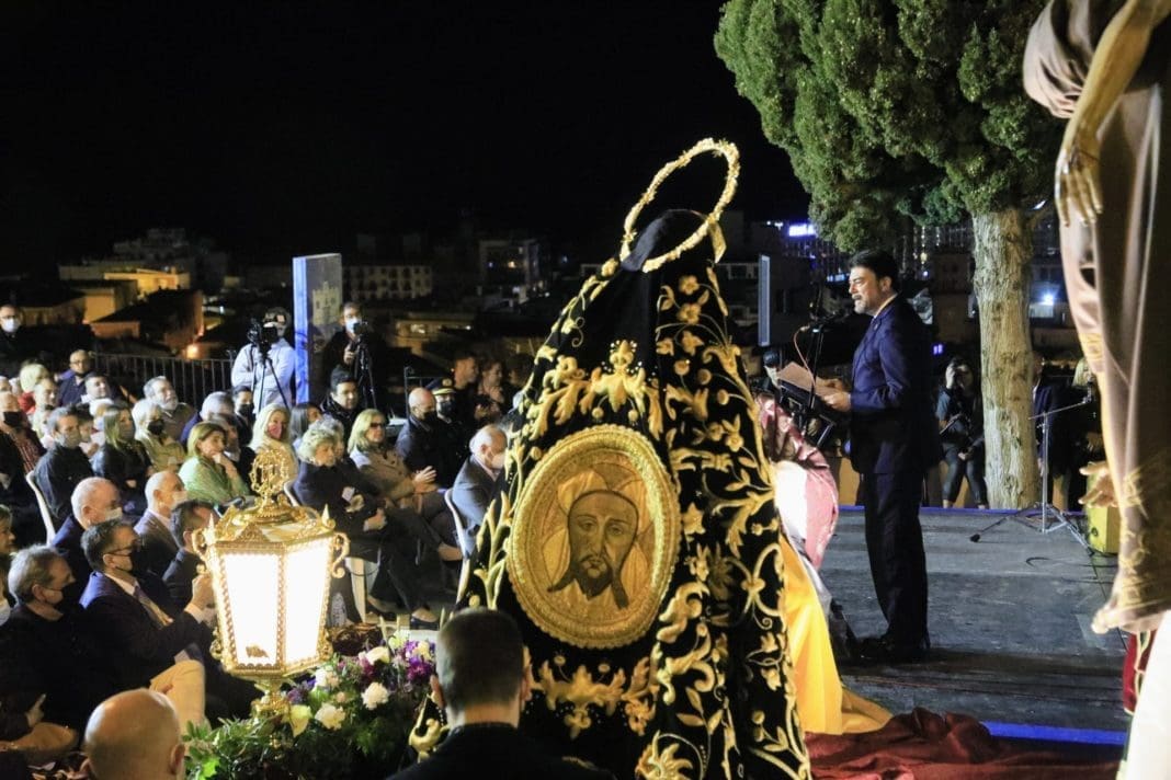 El primer edil sintetizó los hitos más destacados de los 75 años de historia de la Hermandad, tuvo palabras de recuerdo para los capataces y costaleros más significados por su trayectoria, describió cómo se vivió el Miércoles Santo 4 de abril de 2020 cuando el confinamiento impidió la procesión, y alabó la “sencillez y cariño” en el montaje de los Altares de Culto en 2021.