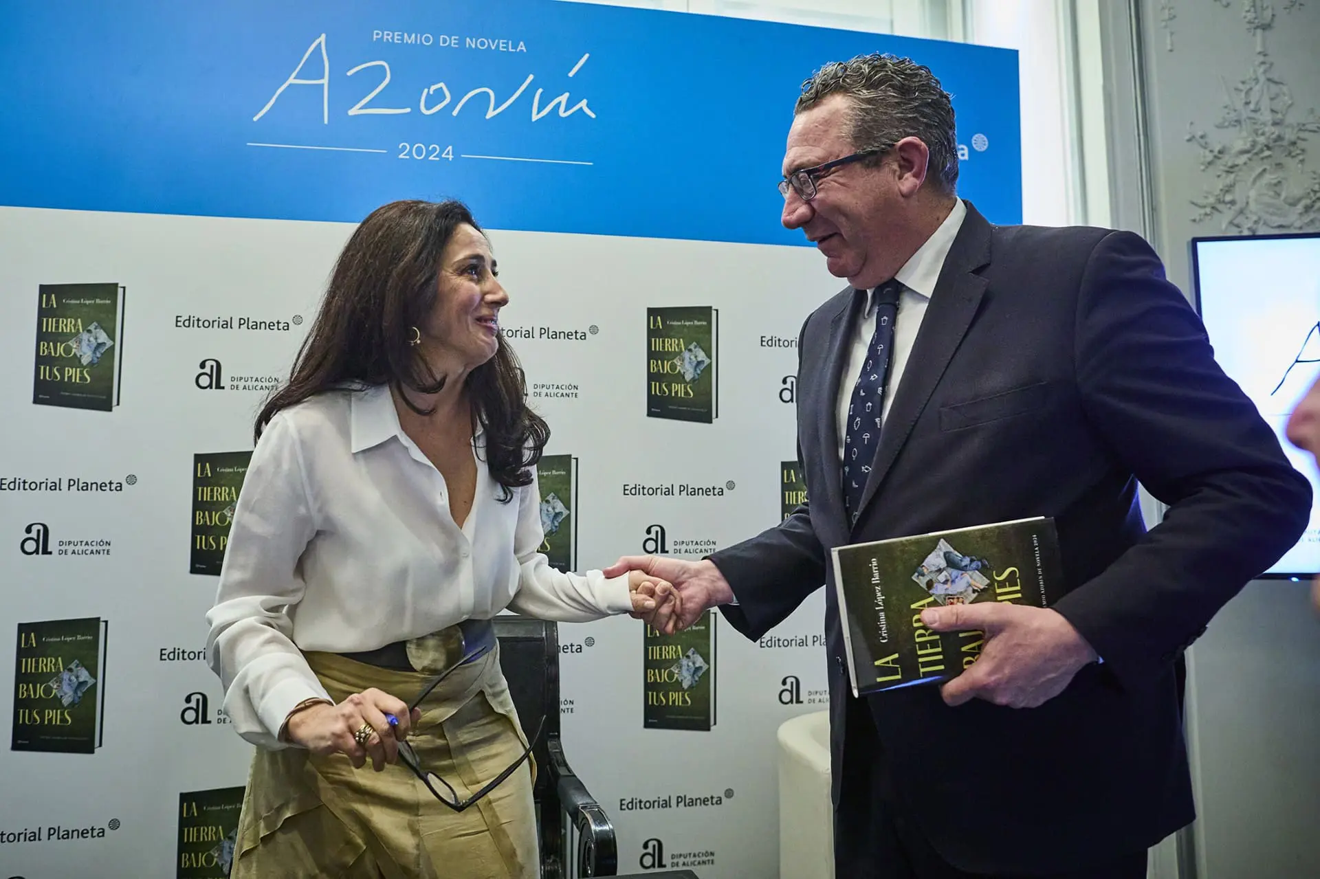 El presidente de la Diputación de Alicante, Toni Pérez, presentó anoche en Madrid, en un acto al que asistieron reconocidos escritores y periodistas, la obra editada del ‘Premio Azorín de Novela 2024’, cuya autora, Cristina López Barrio, se proclamó ganadora del certamen el pasado mes de marzo en el ADDA con La tierra bajo tus pies.