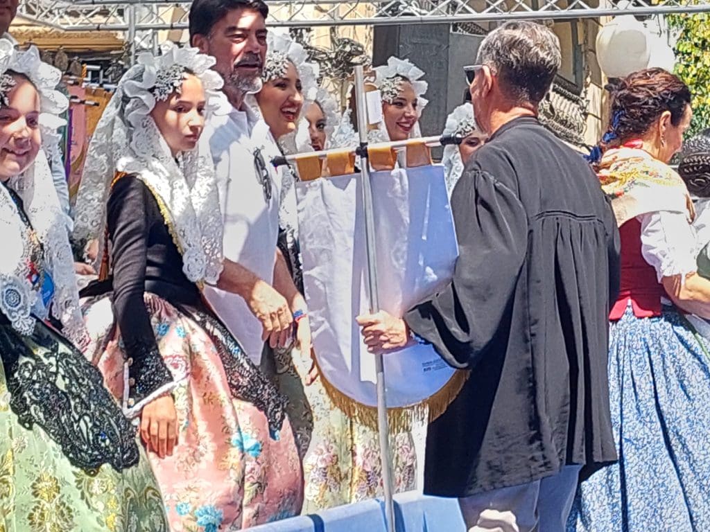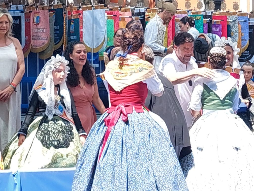 A quienes han acudido a la cita oficial con el traje de la Fiesta, se les sumado otros foguerers de Baver-Els Antigons que han vitoreado a sus compañeros. ‘Vanity’, el lema de la hoguera ganadora, original de Paco Torres, con diseño de Paco Camallonga. Tiene un presupuesto de 91.000 euros y en ella se vierte una crítica a la obsesión actual por la imagen y las Redes Sociales.