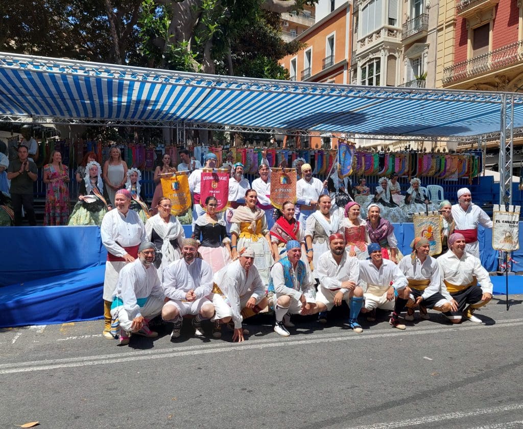 Baver-Els Antigons ha cerrado el desfile del conjunto de las comisiones premiadas. Lo ha hecho, al paso por la tribuna para recoger esa veintena, a los compases del pasodoble ‘Valcárcel, viva Alacant’ de Moisés Davia. La euforia se ha desatado al grito de ¡campeones, campeones! al ir sumando banderines.