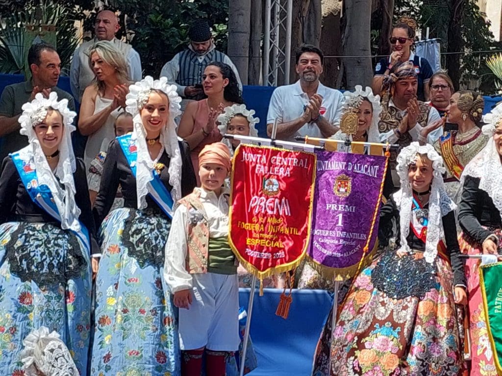 Los foguerers de la hoguera Baver-Els Antigons se han convertido en el mediodía de este domingo en los principales protagonistas de la Entrega de Banderines a las comisiones ganadoras en las distintas categorías, en un acto que ha vuelto a celebrarse en la Rambla de Méndez Núñez.