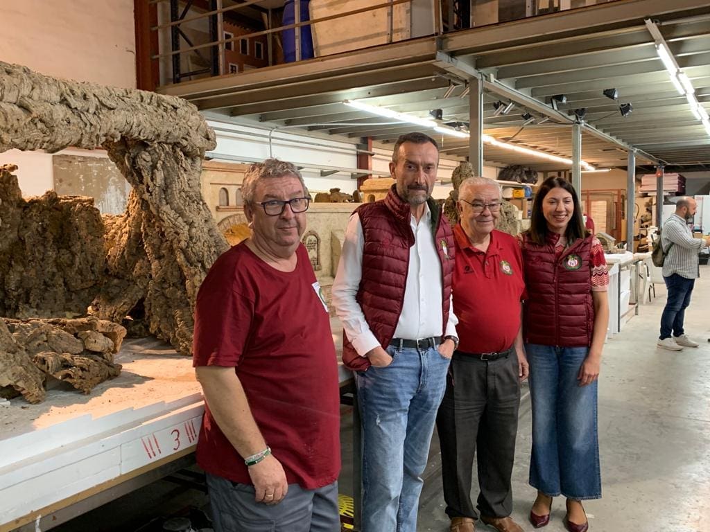 Como es tradicional el alcalde, Carlos González, y la concejala de Fiestas, Mariola Galiana, visitaron ayer la sede de la Asociación de Belenistas, presidida por José Pérez y ubicada en Carrús, donde más de 30 personas llevan trabajando desde enero en la construcción del nacimiento, para cuya instalación se montará una carpa a partir de este lunes, 7 de noviembre.