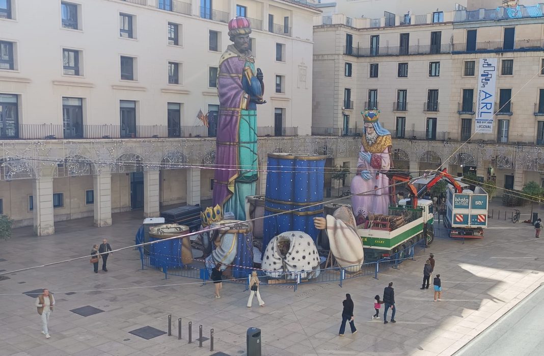 La primera fase del desmontaje del Belén Monumental ha comenzado en la madrugada de este jueves. Por medio de una grúa, se han quitado las piezas superiores de las figuras, a excepción de las de dos de los Reyes Magos -Melchor y Baltasar-. Las tareas han proseguido durante este mediodía. Con el conjunto de las figuras, ya sobre el pavimento de la Plaza del Ayuntamiento, será en la madrugada de este viernes cuando acaben estos trabajos. Este Nacimiento se ha vuelto a convertir en uno de los principales atractivos de la Navidad alicantina.
