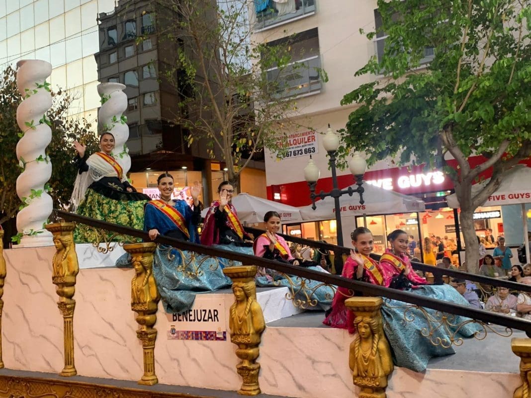 Las fiestas de Benejúzar han estado representadas este año en las Hogueras de Alicante en el Desfile Folclórico Internacional. Un año más han acudido a la capital el grupo folclórico Ntra. Sra. Del pilar, Escuela de Jotas, Hermandad del Pilar, banda de música y corte de mañas y mañicas.