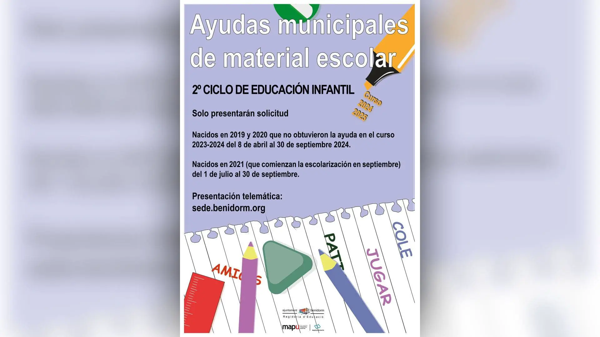 Benidorm habilita las ayudas para la compra de material escolar para alumnos de 2º ciclo de infantil