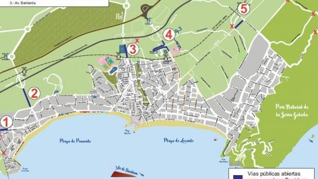 Así lo ha anunciado este miércoles el alcalde, Toni Pérez, en una rueda de prensa telemática, en el que se ha precisado que sólo se podrá acceder a la ciudad por los «puntos habilitados como accesos obligatorios y que se corresponden con las cinco entradas principales a Benidorm: las avenidas Vila Joiosa, Juan Pablo II, Beniardà, Comunidad Europea y Comunitat Valenciana».