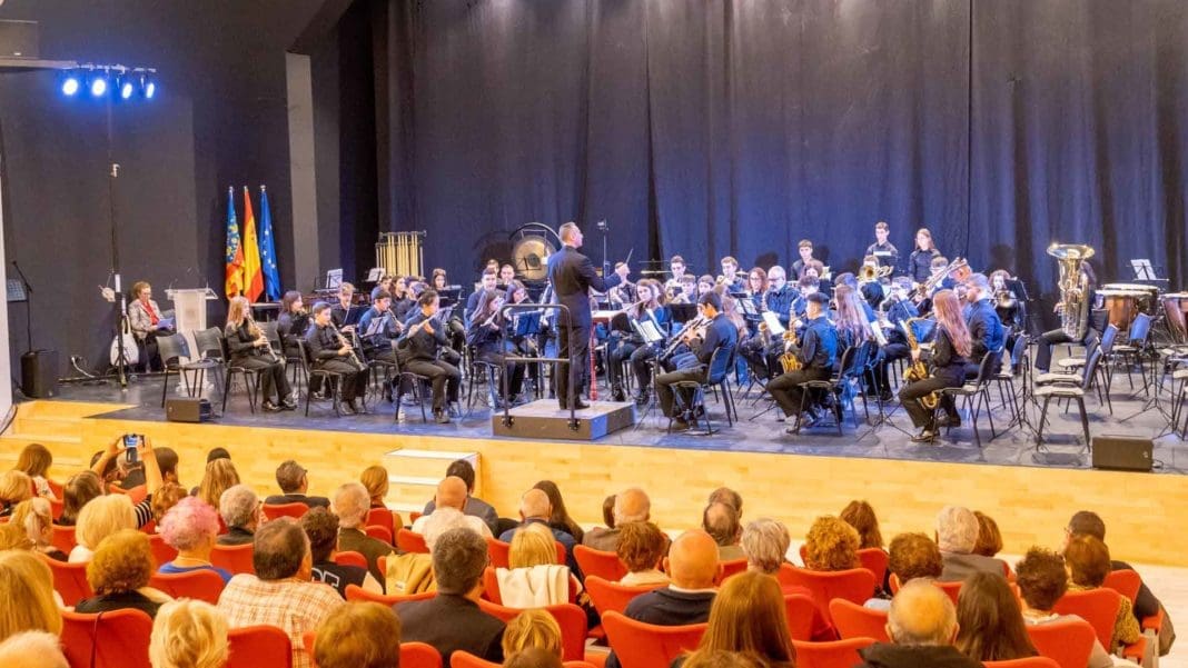 Moreno también ha felicitado a los nueve nuevos integrantes de la banda de la escuela y a los once de la banda sinfónica que hoy han recibido de su mano, y de su director, Francisco José Rovira Peretó, los instrumentos y el diploma que les acredita como músicos de la banda sinfónica, antes de dar comienzo la segunda parte del concierto.