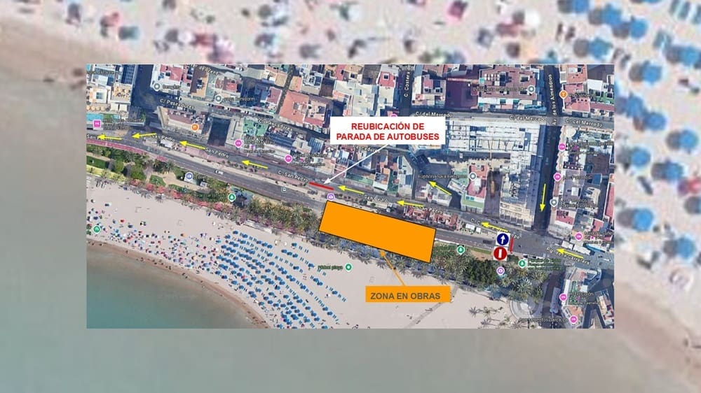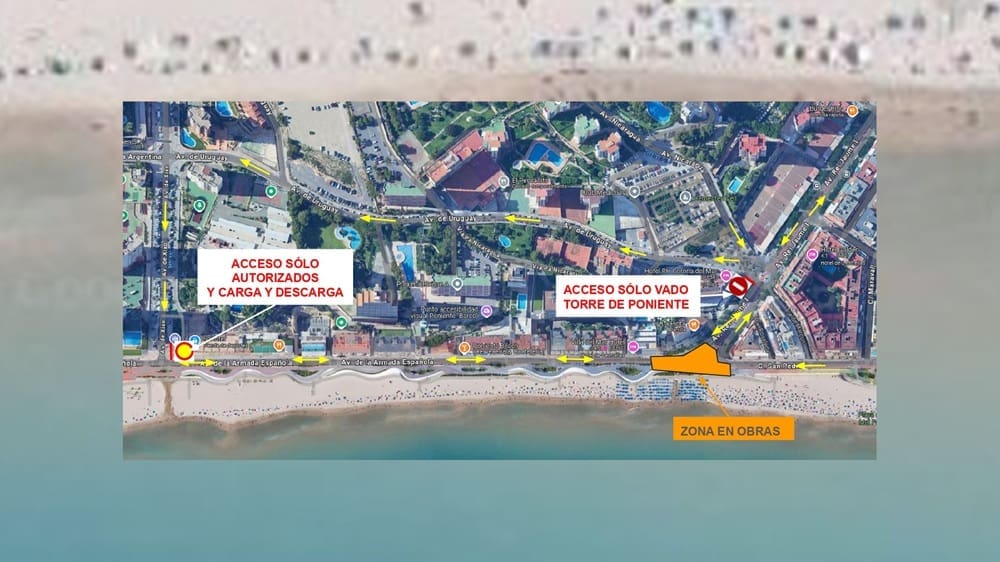 La primera de estas obras consiste en la adecuación del último tramo del colector de saneamiento de la avenida Armada Española en su confluencia con Jaime I. Se trata de un tramo de unos 100 metros que quedará cerrado al tráfico rodado y peatonal. Así, mientras duren los trabajos, el tráfico de vehículos autorizados, reparto de mercancías y transporte público se desviará por la avenida Uruguay, llegándose a Armada Española a través de la avenida de Xixo.