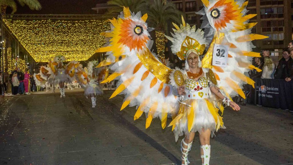 Benidorm ha disfrutado de una intensa noche de Carnaval con la celebración del desfile adulto, que ha reunido a miles de personas en sus calles más céntricas. Los participantes han salido a la calle con elaborados y originales disfraces, logrando que el desfile se haya desarrollado con éxito a lo que ha ayudado una de las noches más cálidas de febrero.