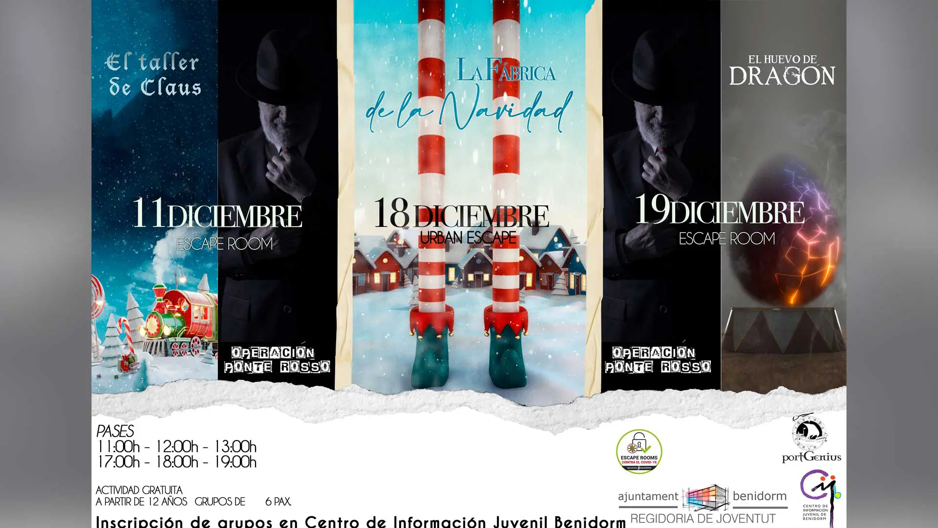 La Concejalía de Juventud del Ayuntamiento de Benidorm ha preparado cinco ‘Escape Rooms’ gratuitas para las fiestas navideñas dirigidas a todas las edades a partir de los 12 años.