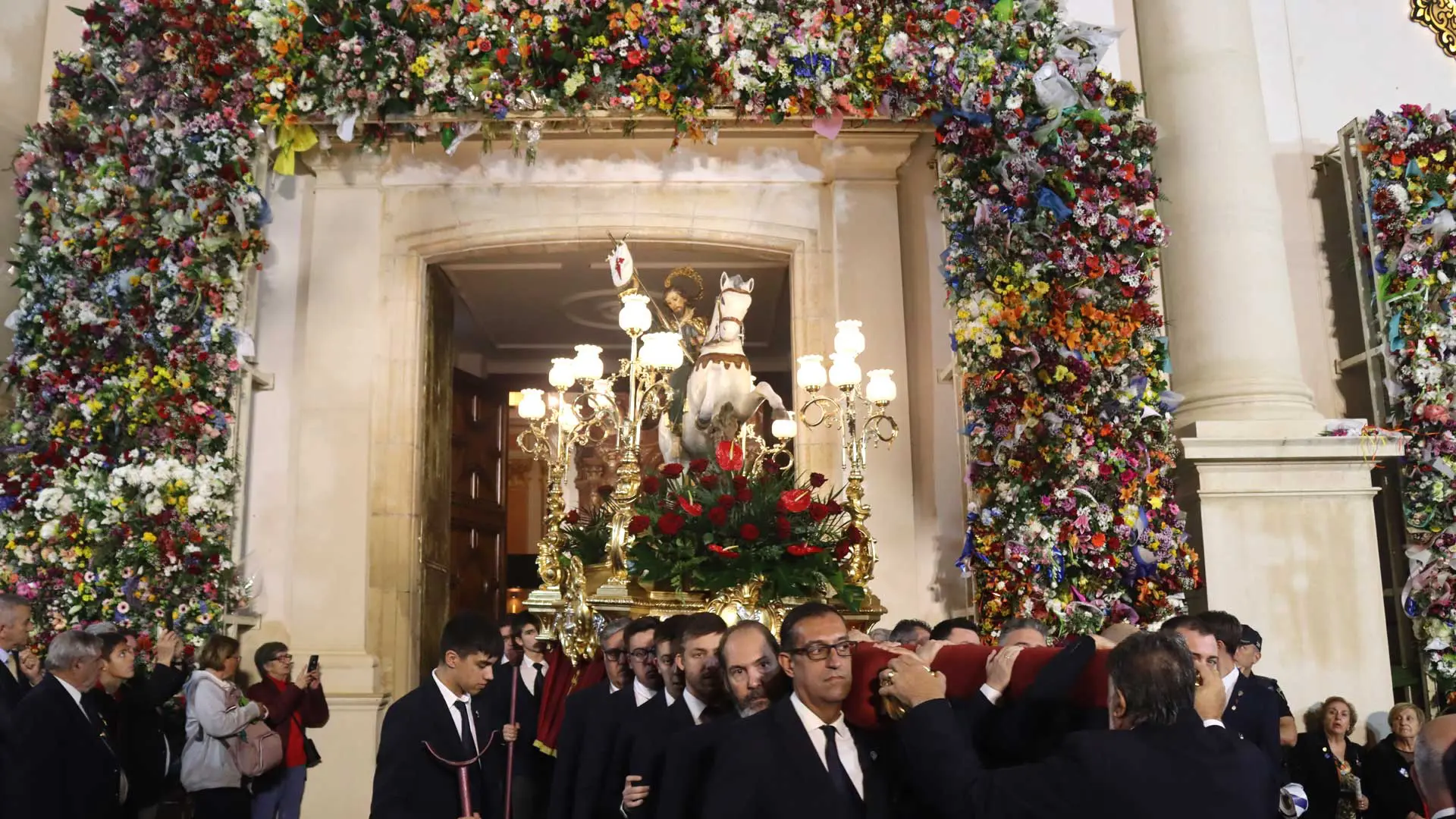 Centenares de vecinos y turistas se han agolpado en las céntricas calles por las que ha transcurrido la procesión. El alcalde, Toni Pérez, junto al edil de Fiestas, Jesús Carrobles, han acompañado a las reinas Mayor e Infantil, Aila Merenciano y Chloe d’Hebboudt, y sus cortes, a lo largo del recorrido, junto a una nutrida representación de la corporación municipal a la que se ha sumado el diputado autonómico, Manuel Pérez Fenoll, el diputado provincial José Ramón González de Zárate, el párroco Juan Antonio González, el abanderado Cristóbal Ronda, los mayorales de honor, la Associació de Penyes y numerosos vecinos.