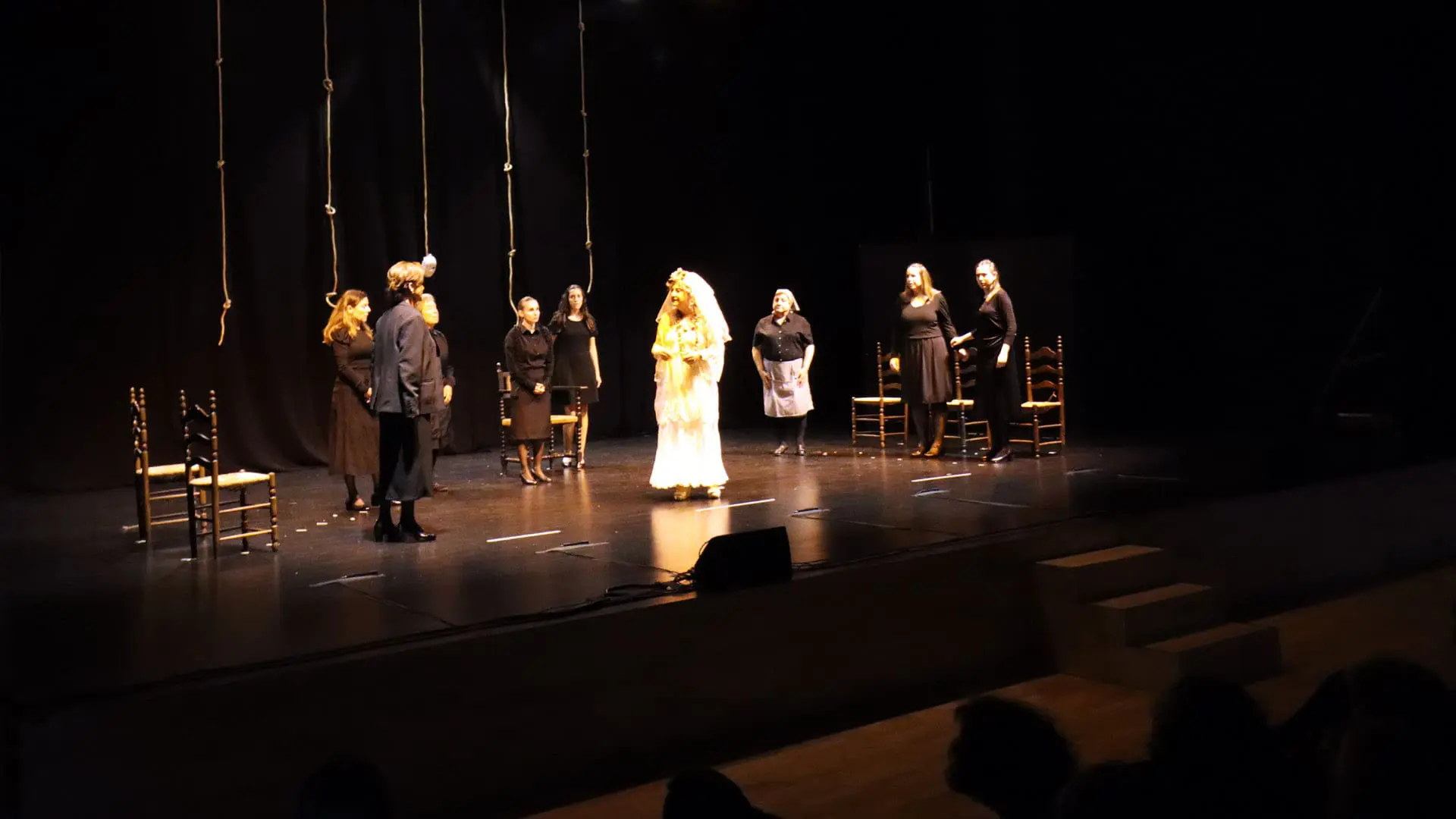 El Auditorio del Centro Cultural se llenó de público hasta la bandera la noche de ayer, viernes, para disfrutar de la representación de ‘La casa de Bernarda Alba’, dentro de la programación de Teatro Amateur organizada por la Concejalía de Cultura del Ayuntamiento de Benidorm. Con una puesta en escena sencilla pero muy cuidada, a cargo de la compañía Mascarat Producciones, la interpretación de este clásico de Federico García Lorca puso en pie a todo el auditorio, que dedicó un sonoro y largo aplauso a todo el elenco.