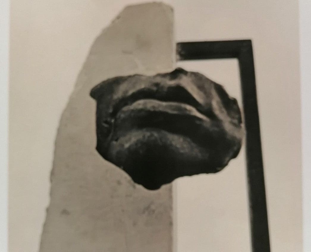 La obra está formada por un conjunto de tres elementos: bloque de piedra, pieza de bronce representando parte de un rostro realizado en fundición y estructura metálica en acero corten.