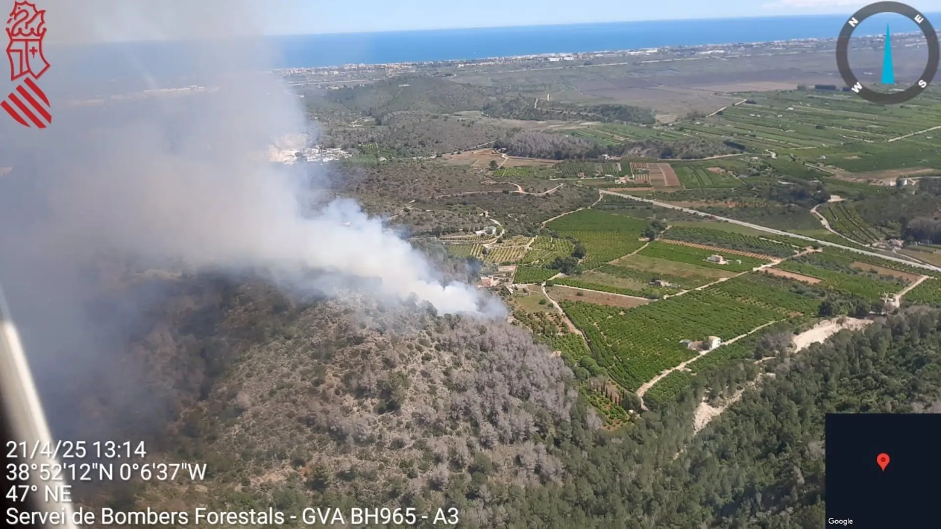 Efectivos del Consorcio Provincial de Bomberos de Alicante han dado por extinguido el incendio incendio forestal declarado este lunes en la montaña Ombrio de Mostalla, en la CV-715 en el municipio de Pego.