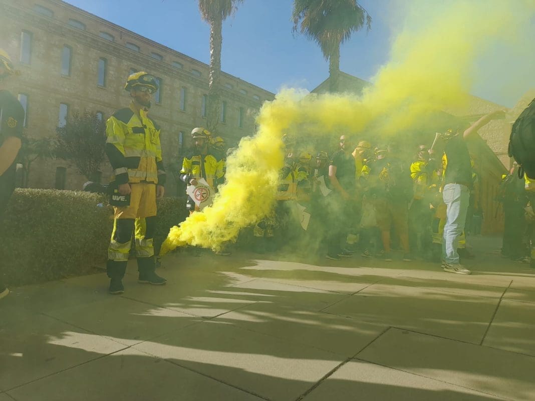 Bomberos y bomberos forestales se han concentrado este lunes en València en protesta por los recortes en su servicio, y para exigir la firma del primer convenio colectivo de la empresa SGISE y el 100 % de las unidades contratadas los 365 días del año.