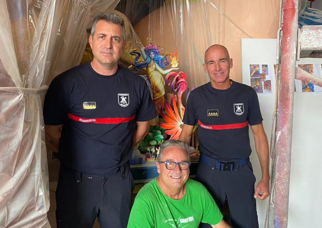 Los Bomberos del Servicio de Prevención, Extinción de Incendios y Salvamento del Ayuntamiento de Alicante han realizado esta mañana una visita al taller del artista constructor de la Hoguera Oficial ‘Geoda’, Pedro Espadero, para supervisar el protocolo y la seguridad del monumento, así como su estructura, estabilidad y medidas que se van a llevar a cabo en la plantà que tendrá una altura de 20 metros y se realizará el 15 de junio.
