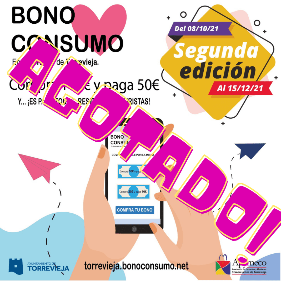 El “Bono Consumo” en su primera edición de verano puesta en marcha, al igual que la actual, por el Ayuntamiento de Torrevieja en colaboración con APYMECO para incentivar la compra en todos los sectores productivos de la localidad, especialmente en el Comercio y la Hostelería, se agotó en tan solo veinte días tras su puesta en marcha.