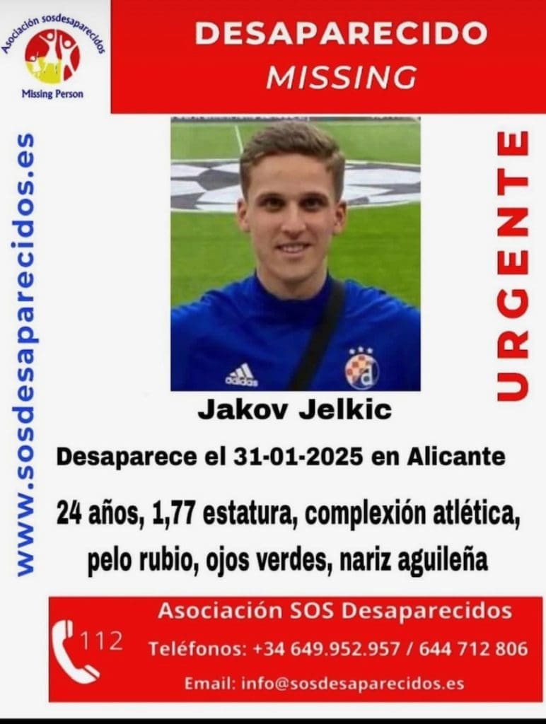 Las autoridades y la organización SOS Desaparecidos han activado un protocolo de búsqueda para dar con el paradero de Jakov Jelkic, un joven de origen suizo desaparecido en Alicante en la madrugada del sábado 1 de febrero de 2025.