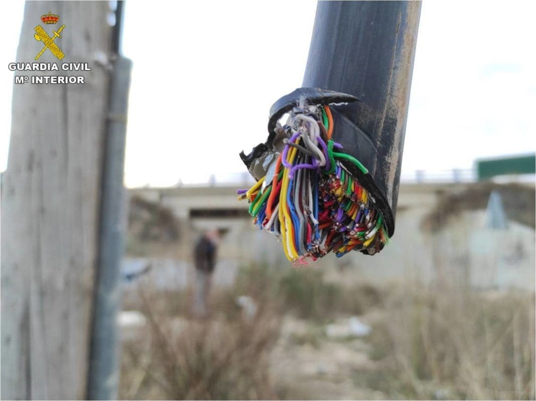 La Guardia Civil de San Vicente del Raspeig detectó un incremento en los delitos de robo de cableado de las instalaciones de suministro de telefonía en las partidas rurales de los alrededores de esa localidad, que se venía produciendo desde finales del pasado mes de febrero.