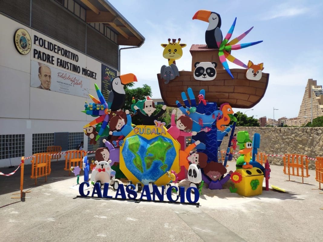 Los colegios premiados en el concurso municipal de construcción de Hogueras Escolares han recogido sus premios este jueves 16 de junio en el Salón Azul del Ayuntamiento de Alicante en un acto amadrinado por la Bellesa del Foc Infantil, Valeria Gómez, y sus damas de honor. El primer premio «Cuídala» ha recaído en el Instituto Calasancio Hijas de la Divina Pastora, con un concepto del alumnado de 4º de ESO que han ayudado a desarrollar y plantar el resto de estudiantes de Secundaria y Bachillerato. El tema planteado es el de protección a la naturaleza y ha empleado para su construcción materiales reciclados. «La parte frontal es las maravillas de la naturaleza: fauna, flora; y la parte de atrás todo lo que el ser humano afecta a la naturaleza, como con el deshielo o la deforestación», explica el profesor de Tecnología Gonzalo Sancho.