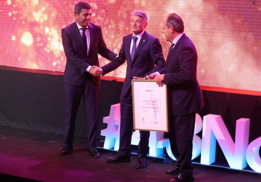 Por su parte, Rafael Francisco Bernabeu Pérez, presidente del Instituto Bernabeu, ha recibido la Medalla de Oro y Brillantes de la Cámara. Durante la gala, se ha homenajeado a los expresidentes de la Cámara de Comercio Antonio Fernández Valenzuela y José Enrique Garrigós, a quienes se les ha concedido la Medalla de Oro de la Orden de la Cámara de España a título póstumo. También se ha reconocido a los empresarios Joaquín Rocamora, José Luis Montes Tallón y Pedro Reig, fallecidos en el último año, con un reconocimiento extraordinario a la trayectoria empresarial.