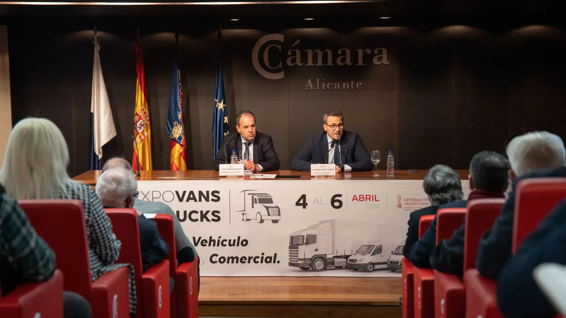 El presidente de la Cámara de Comercio de Alicante, Carlos Baño, y el director general de IFA – Fira Alacant, Alejandro Morant, han presentado hoy EXPOVANS & TRUCKS, el I Salón del Vehículo Industrial y Comercial.