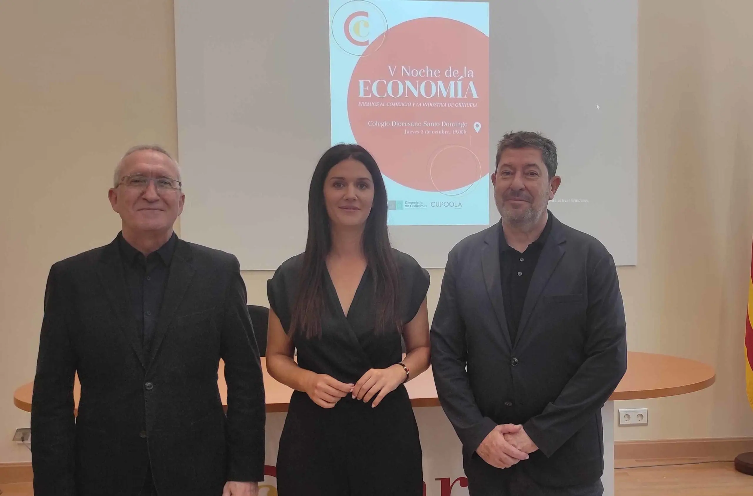 La Cámara de Comercio de Orihuela ultima los preparativos para la quinta edición de la Noche de la Economía y Premios al Comercio y la Industria de Orihuela, que este año se traslada al claustro de la antigua Universidad, en el Colegio Diocesano de Santo Domingo. El presidente de Cámara Orihuela, Mario Martínez, y la vicepresidenta de la entidad, Cristina Torres, han presentado hoy en las instalaciones del Vivero de Empresas este evento, acompañados por el concejal de Comercio del Ayuntamiento de Orihuela, Vicente Pina.