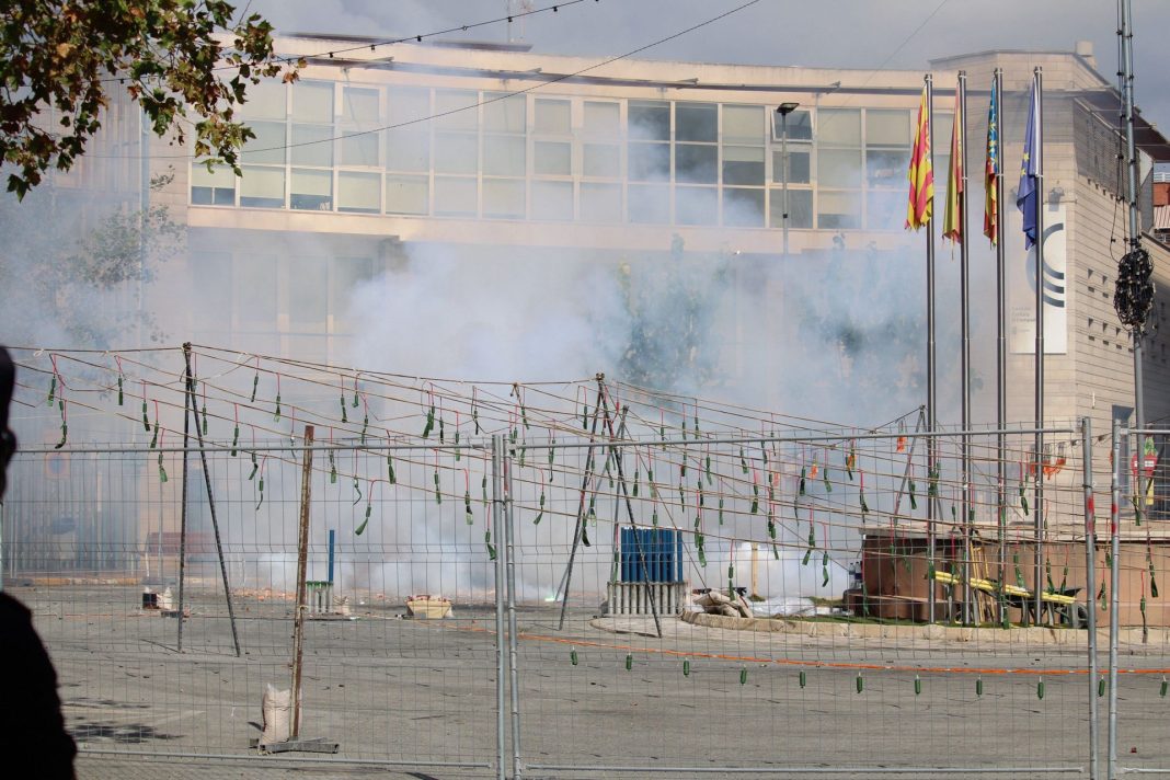 Autoridades municipales y festeras se han encargado de accionar el botón que daba comienzo al estruendoso espectáculo pirotécnico, en una plaza semicerrada que agranda el volumen, que es lo que más gusta por estas tierras.