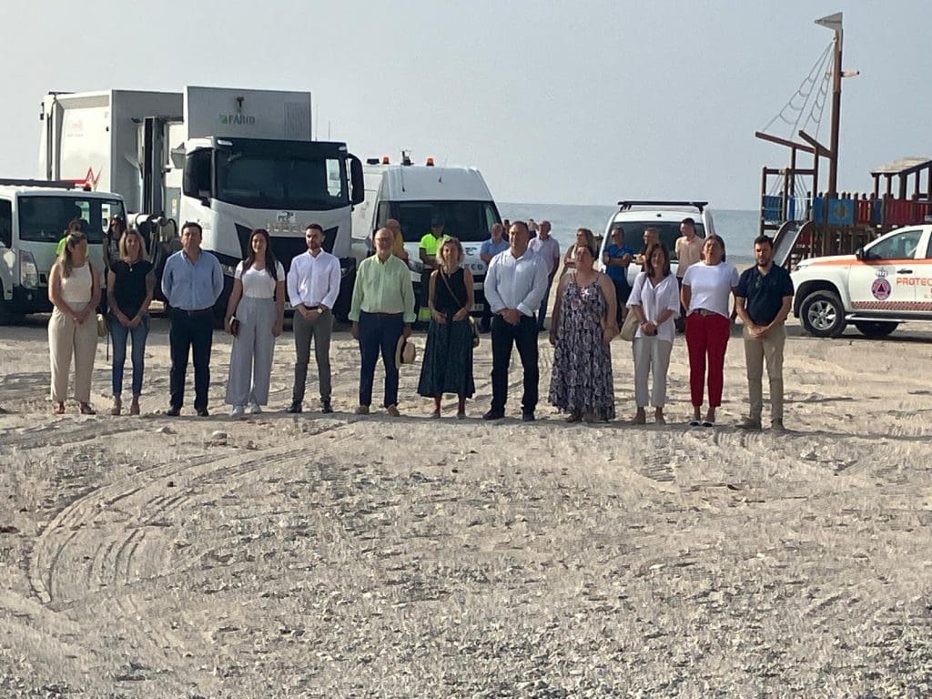 Una parte del dispositivo especial de limpieza, seguridad y servicios estivales se ha hecho la tradicional foto junto a miembros del Pleno este jueves a la altura de La Penyeta (playa Carrer la Mar). En este acto que se considera “pistoletazo de salida” de la temporada alta turística, han participado Integrantes de la plantilla de salvamento y socorrismo, personal de limpieza, cuerpo de voluntarios de Protección Civil, efectivos de Policía Local y Guardia Civil, inspectores y funcionarios adscritos a los departamentos de Playas, Servicios y Mantenimiento y Seguridad.