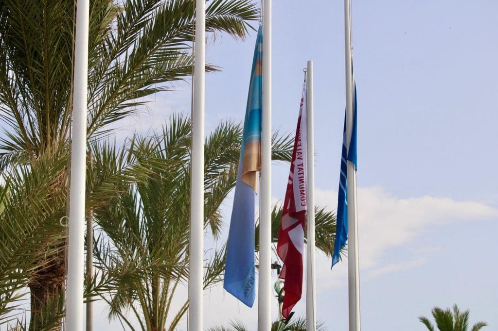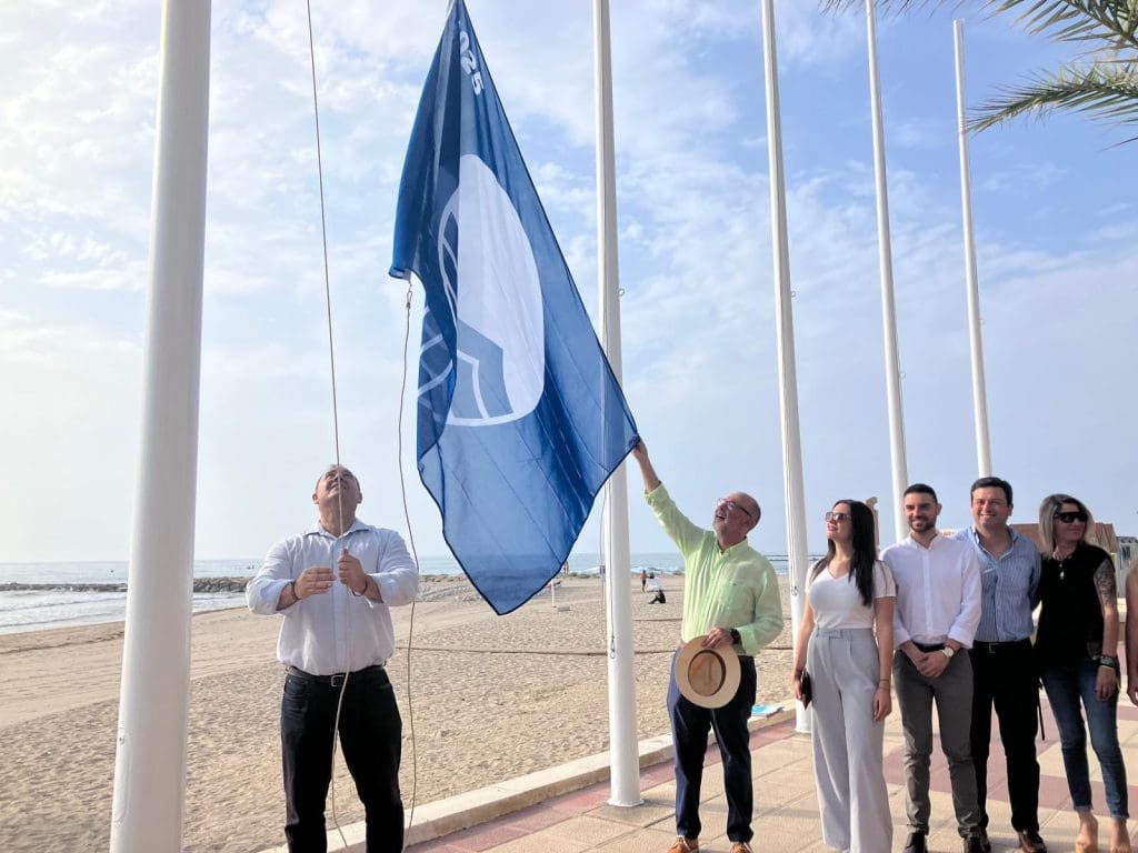Tras la presentación de los efectivos, representantes de los cuatro grupos políticos asistentes han procedido al izado de las banderas Azul, Qualitur y Ecoplayas. El municipio ostenta, además los distintivos de Playas sin humo e ISO. Todas estas acreditaciones certifican la calidad del agua, instalaciones y servicios. «Es labor de todo un año», manifiesta Berenguer, que recuerda que desde hace 39 años continuados ondea la Bandera Azul en estas costas. Es uno de los ocho municipios «de toda España que no han fallado ningún año».