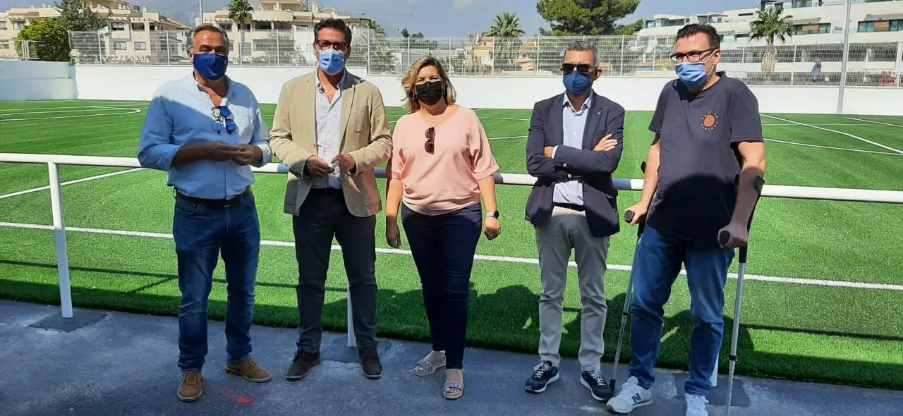 El diputado de Infraestructuras, Javier Gutiérrez, ha visitado esta mañana el municipio de l’Alfàs del Pi, acompañado por la concejala de Presidencia, Maite García, para conocer el nuevo campo de fútbol 7 construido en la zona de l’Albir, subvencionado en un 40% por la Diputación de Alicante.