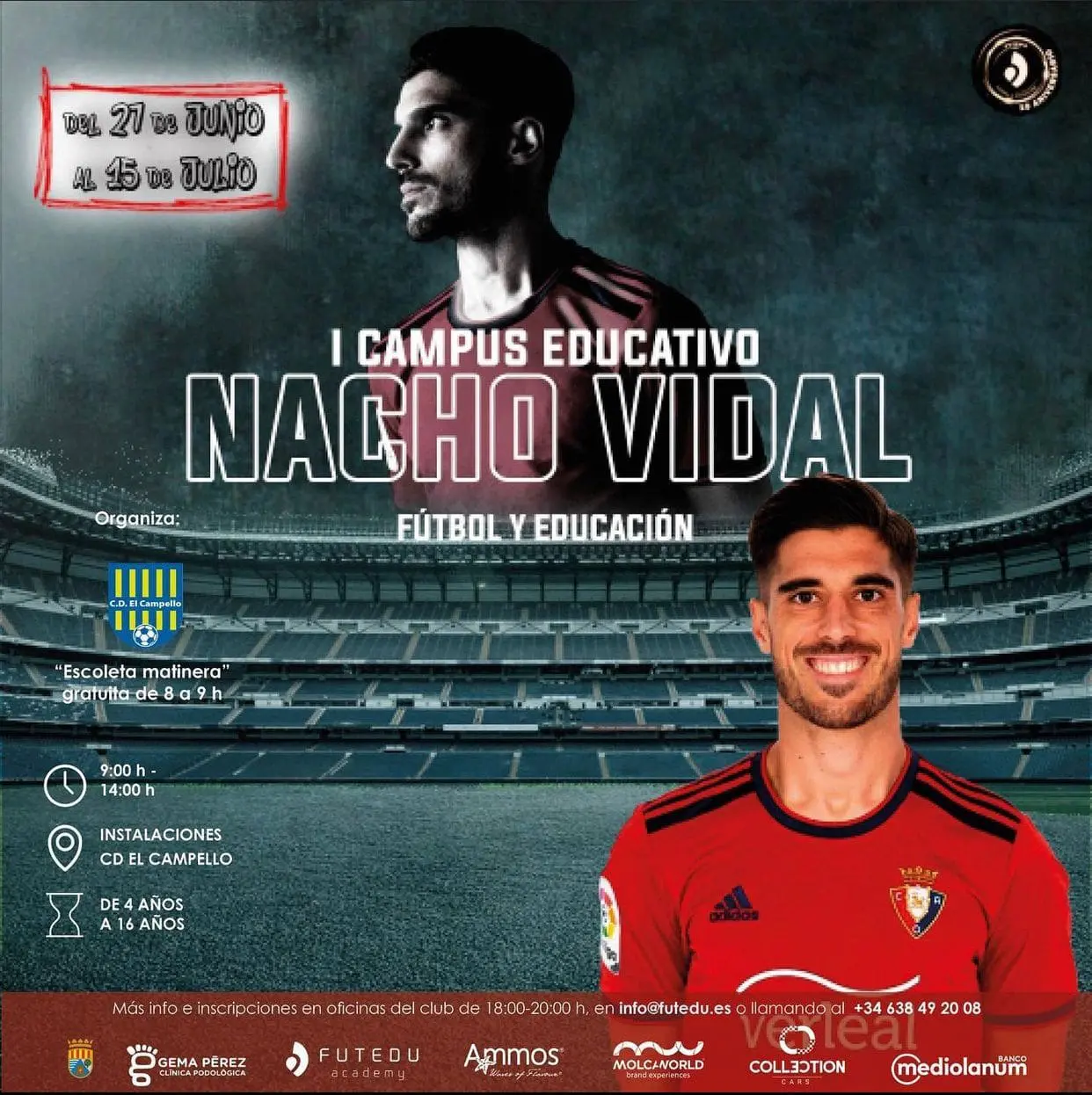 Se trata de un campus educativo en el que no sólo se trabajará con aspectos técnico-tácticos, sino también valores que representan el propio Nacho Vidal y el CD Campello, bajo la dirección del método Futedu. Los actos se desarrollarán a diario entre las 9:00 y la 14:00 horas. Se ha previsto un servicio “matinera” que comenzará a las 8:00 de la mañana, en beneficio de los progenitores que trabajen.