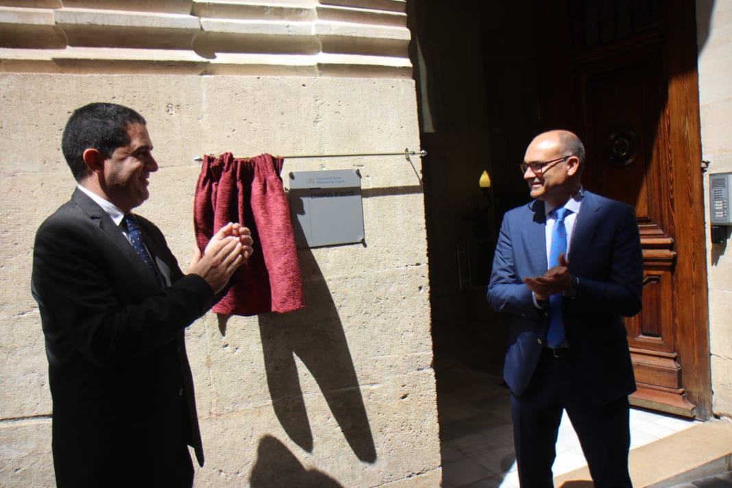 El rector, Manuel Palomar y una numerosa representación del equipo de gobierno de la UA, acompañados del alcalde, Toni Francés y miembros de la corporación municipal de Alcoy, además de las alcaldesas de Cocentaina y Benilloba, Mireia Estepa y Ana Delia Gisbert, descubrieron una placa que identifica el edificio como sede del nuevo Campus de Alcoy y visitaron las instalaciones que el próximo curso acogerán la titulación del grado de Maestro de Educación Infantil.