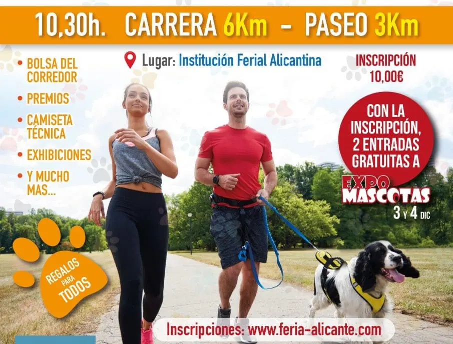 La I edición de Canicross Expomascotas, evento organizado por la concejalía de Bienestar Animal del Ayuntamiento de Elche y la Institución Ferial Alicantina (IFA), cuenta con una modalidad de carrera, de 6 kilómetros, y otra de paseo, de 3 kilómetros, con el objetivo de promover el cuidado de los cánidos y realizar deporte junto a las mascotas de forma saludable.