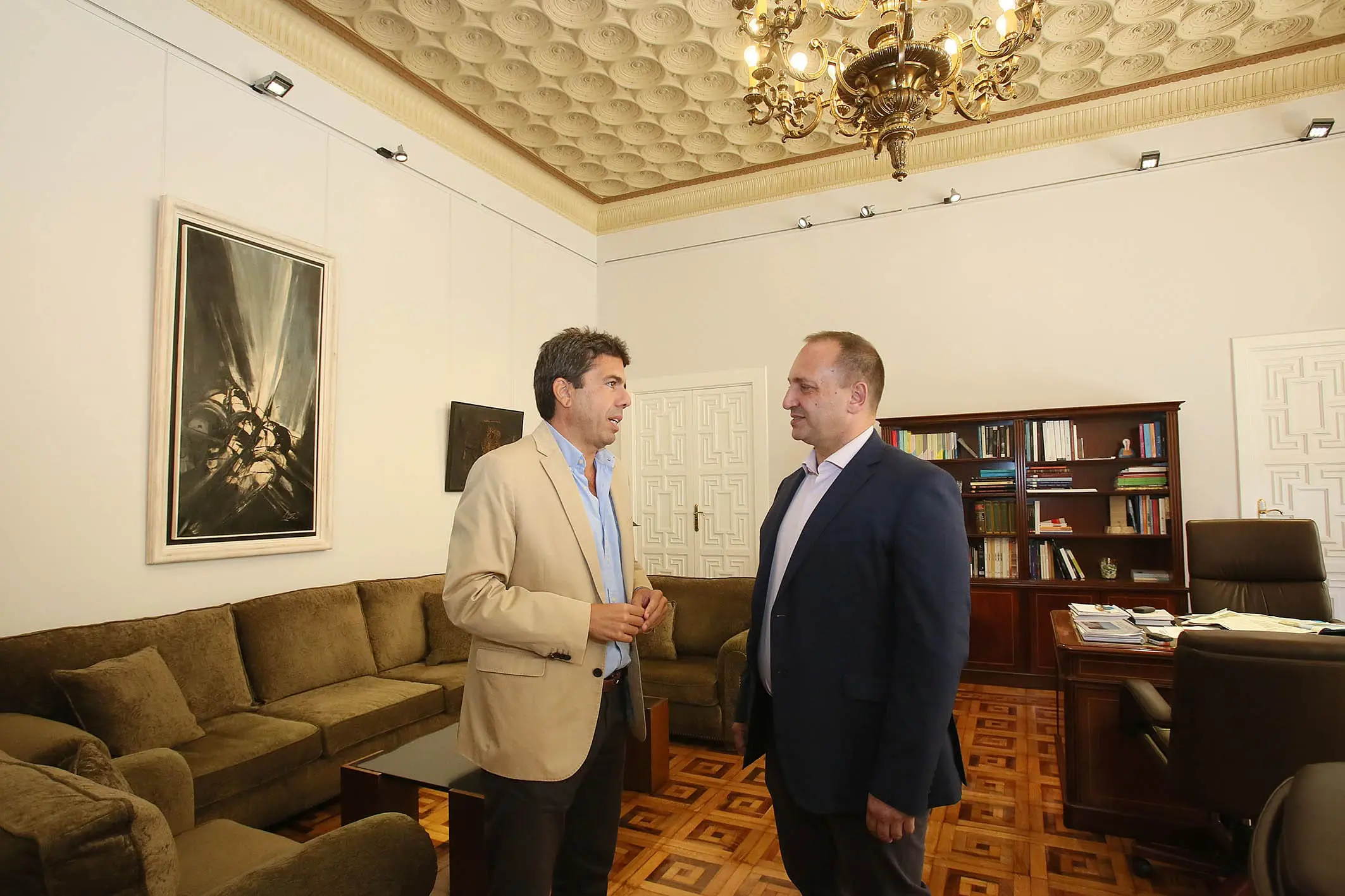 El presidente de la Diputación de Alicante, Carlos Mazón, se ha reunido en el Palacio Provincial con el vicepresidente segundo y conseller d’Habitatge i Arquitectura Bioclimàtica de la Generalitat Valenciana, Rubén Martínez Dalmau, para abordar diversos asuntos de actualidad en su primer encuentro oficial.