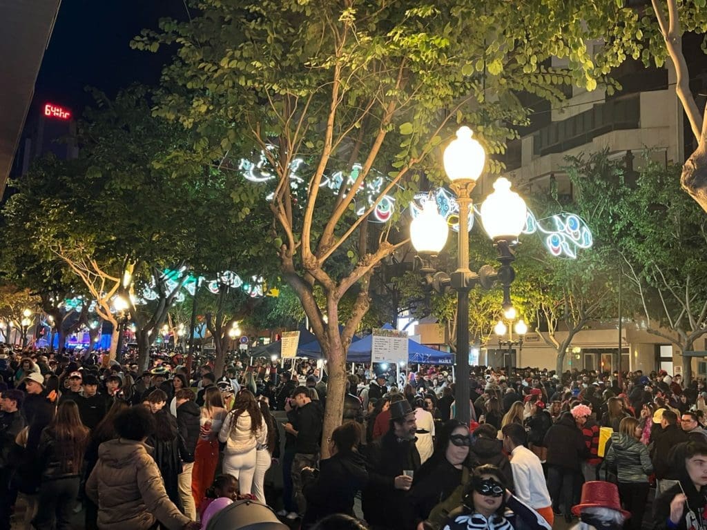 El carnaval infantil se inició sobre las 17 horas con talleres, photo-call y otras actividades para los más pequeños, mientras que el adulto arrancó a las 22.00 hasta las 4 de la madrugada con un doble escenario musical en la parte superior de la Rambla, a la altura de la Plaza de San Cristóbal y otro frente al recién remodelado Portal de Elche.