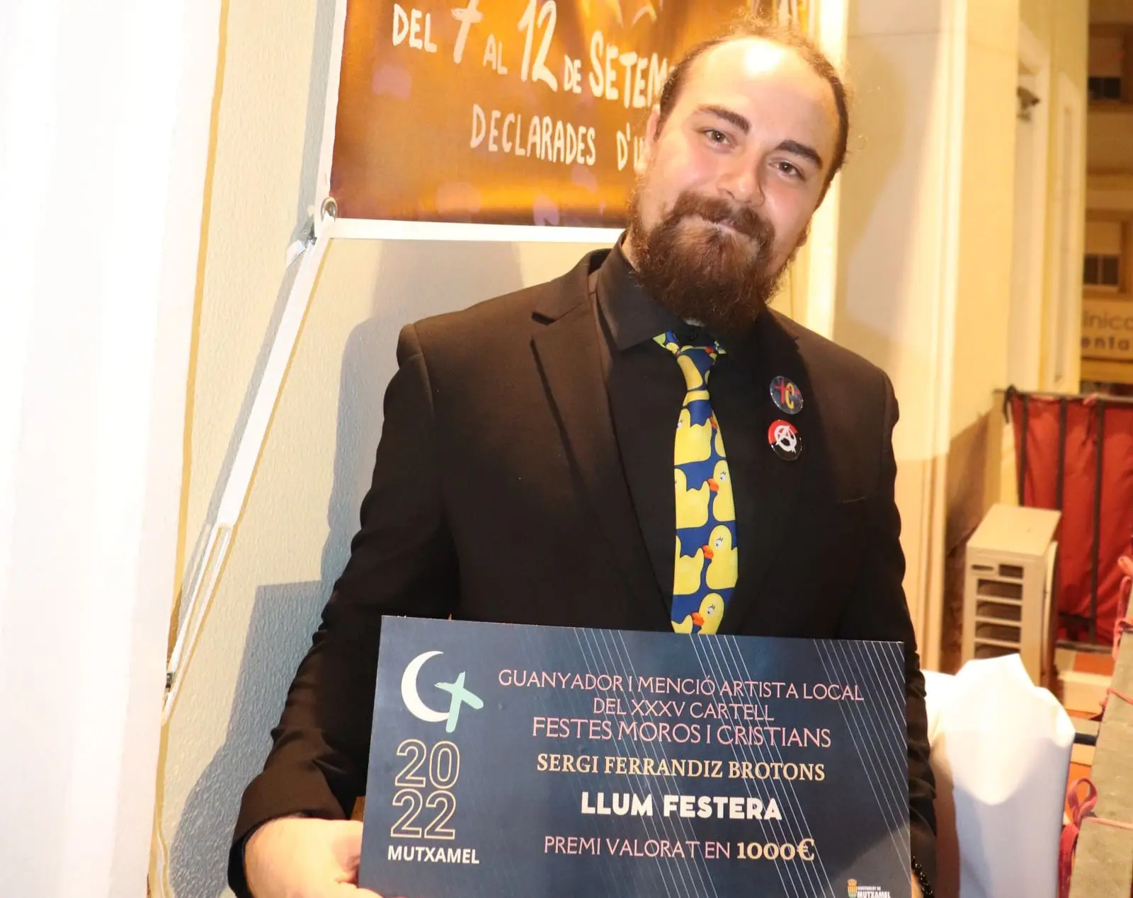 Una obra que refleja la perspectiva y sensibilidad de su autor a la hora de vivir la fiesta. Sergi Ferràndiz Brotons, recibió en la noche de ayer sábado, 6 de agosto, al finalizar la festividad de El Salvador, el premio que lo acredita como ganador del XXXV Concurso del Cartel Anunciador de les Festes de Moros i Cristians de Mutxamel. El autor de la obra titulada ‘Llum festera’, al tratarse de un autor local, también consiguió la Mención Especial a la Mejor Obra de artista residente en Mutxamel.