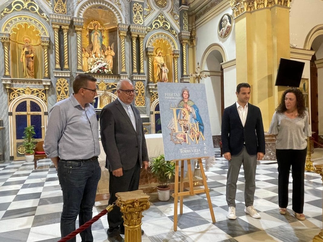 En la mañana de hoy se ha presentado el cartel anunciador de las fiestas patronales de Torrevieja en honor a la Inmaculada Concepción. En la misma han estado presentes el alcalde de Torrevieja, Eduardo Dolón; la edil de Fiestas, Rosario Martínez; el párroco de la Iglesia Arciprestal de la Inmaculada Concepción, Don José Antonio Gea, y el presidente de la asociación religiosa Hijos de la Inmaculada, Antonio Aniorte.