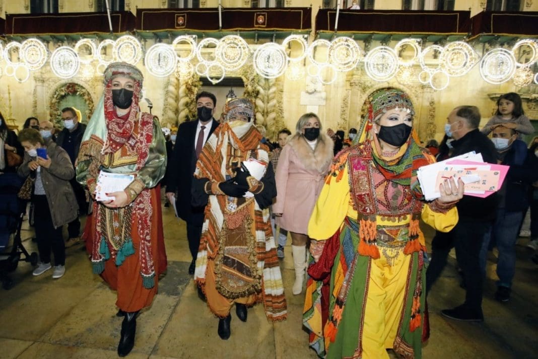 Las Carteras Reales reciben las cartas de los niños en la Plaza del Ayuntamiento de Alicante