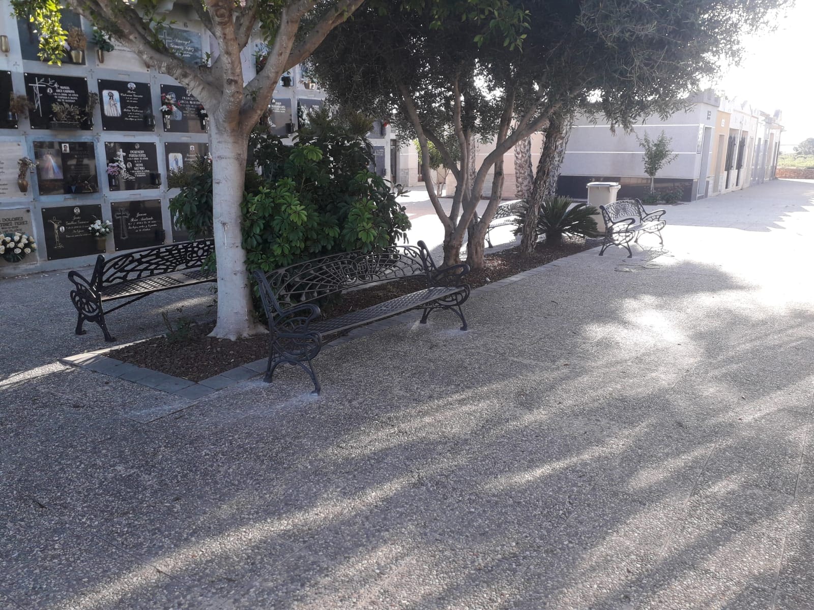Se han colocado los bancos que faltaban en las galerías de la zona de la tercera ampliación del cementerio, conocida como cementerio nuevo.