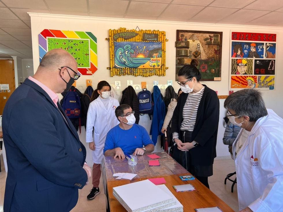 Durante la visita, Aitana Mas ha recorrido las instalaciones de ‘Les Talaies’ para conocer a las y los trabajadores del centro y a las personas usuarias de ambos recursos. Actualmente el centro tiene 60 residentes que acuden también a los talleres del centro ocupacional, que cuenta con un total de 80 plazas.