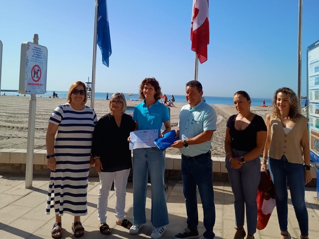 La alcaldesa de Santa Pola, Loreto Serrano, y concejal de Playas, Ángel Piedecausa, entregaron el pasado viernes 15 de junio la distinción de Centro Azul 2024 al personal técnico del CIMAR para su colocación en las instalaciones del centro situado en la estructura de un antiguo cuartel de carabineros construido en los años 20 (Cuartel de la Torre d’Enmig), con una ubicación privilegiada a los pies del arrecife coralino fósil de Santa Pola y a pocos metros del litoral.