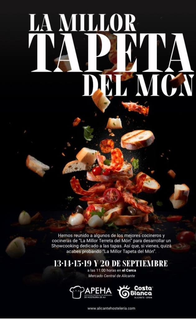 El concurso ‘La millor tapeta del món’ está organizado por el Patronato de Turismo Costa Blanca y la Asociación Provincial de Empresarios de Hostelería de Alicante, en colaboración con el Ayuntamiento de Alicanteque cede las instalaciones municipales del Cerca, y tiene lugar del 13 al 20 de septiembre, a partir de las 11 horas.