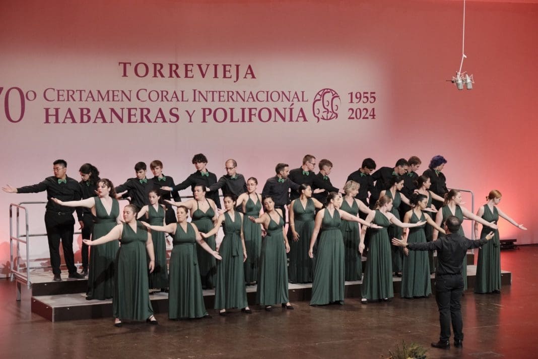 y Polifonía de Torrevieja ha concluido su fase de competición con la actuación de tres agrupaciones españolas y una cuarta asiática, procedente de Filipinas: el Dancing Choir (Valencia), el coro Encanto de Griñón, el Eragiyok Abesbatza. (Astigarraga), para cerrar con Los Cantantes de Manila (Filipinas), ofreciendo cada uno sus cinco obras correspondientes, empezando por “Con un beso”, de Quesada Hurtado y Martínez López, habanera de obligada interpretación por todas las agrupaciones que se disputan el palmarés del Certamen.