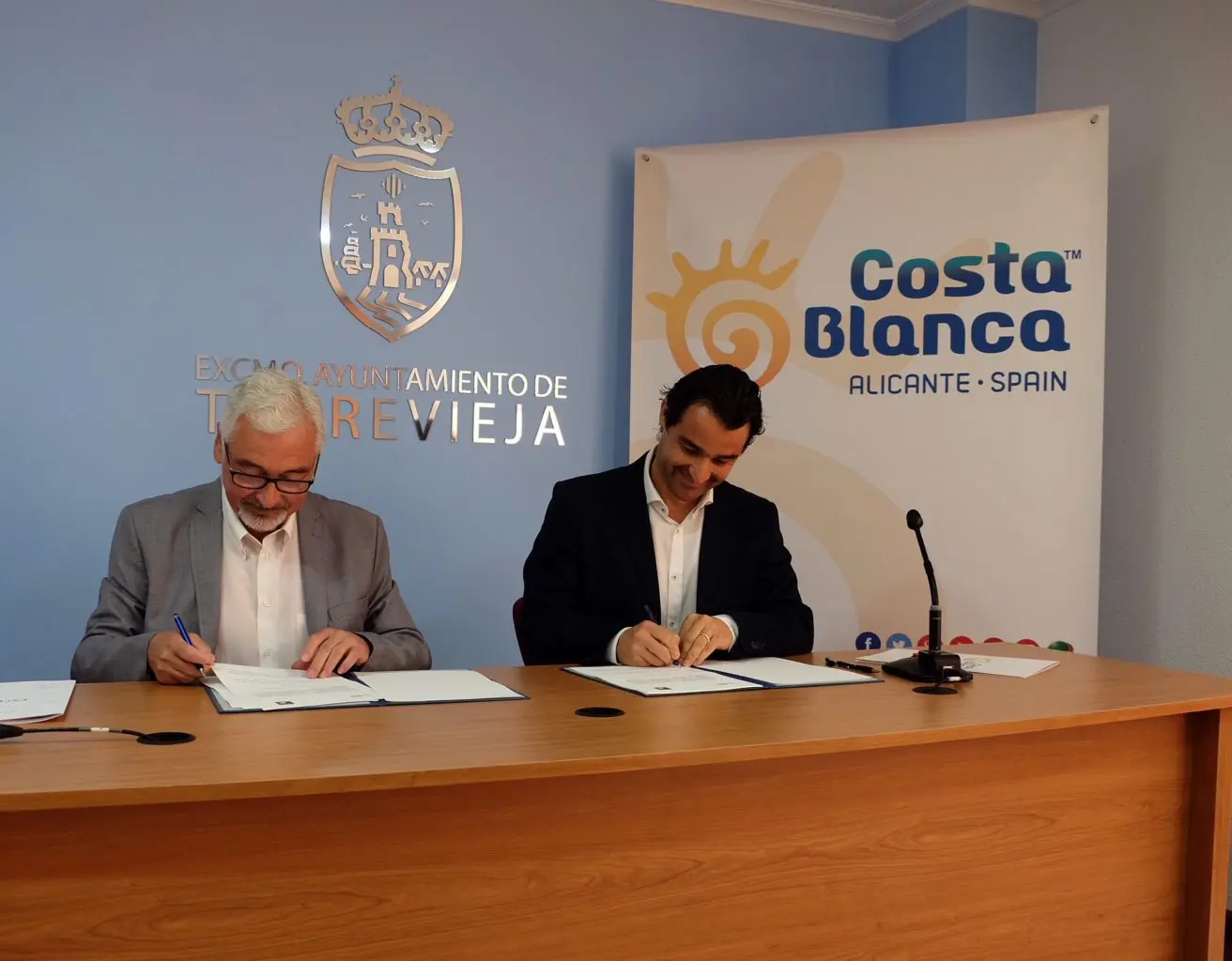 El diputado de Promoción Turística, Eduardo Dolón, y el alcalde de la ciudad, en calidad de presidente del Patronato Municipal de este certamen, José Manuel Dolón, han firmado esta mañana el convenio que regula la colaboración, que contempla una aportación por parte del organismo autónomo de la Diputación de Alicante de 75.000 euros, 20.000 euros más que en 2017.