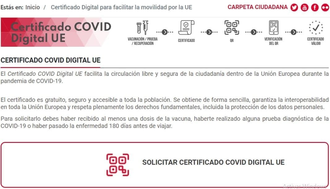 Por lo tanto, desde el día 1 de julio cualquier persona que desee viajar a países de la UE ya puede justificar mediante este certificado si se le ha puesto ya la vacuna frente al Covid-19, si se le ha realizado una prueba diagnóstica o si ya ha pasado la enfermedad.